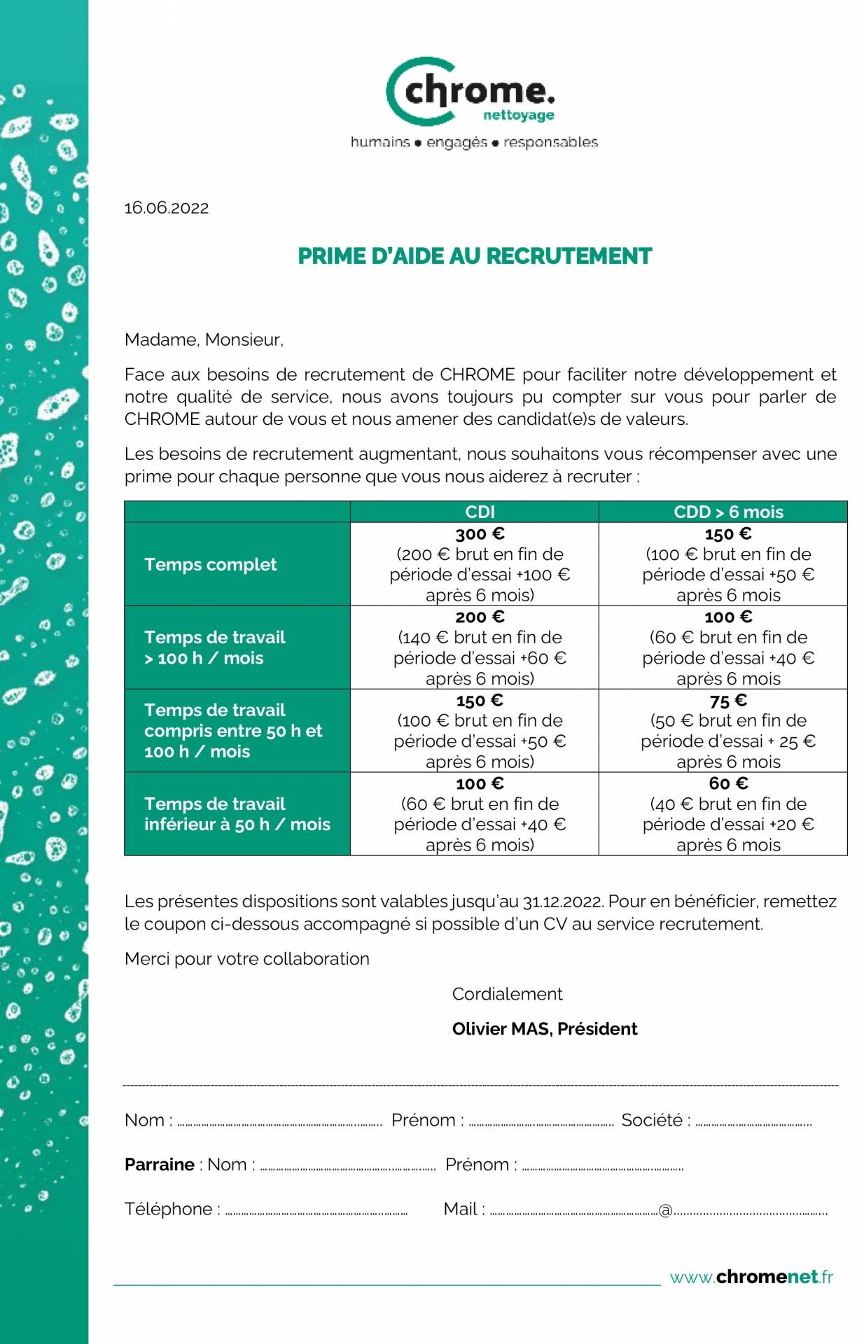 Les besoins de recrutement augmentant, nous souhaitons vous récompenser avec une prime pour chaque personne que vous nous aiderez à recruter (voir image ci-dessous).
